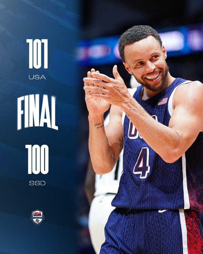 美国男101-100险胜南苏丹 詹姆斯25+6+7&上篮绝杀 C-琼斯三双