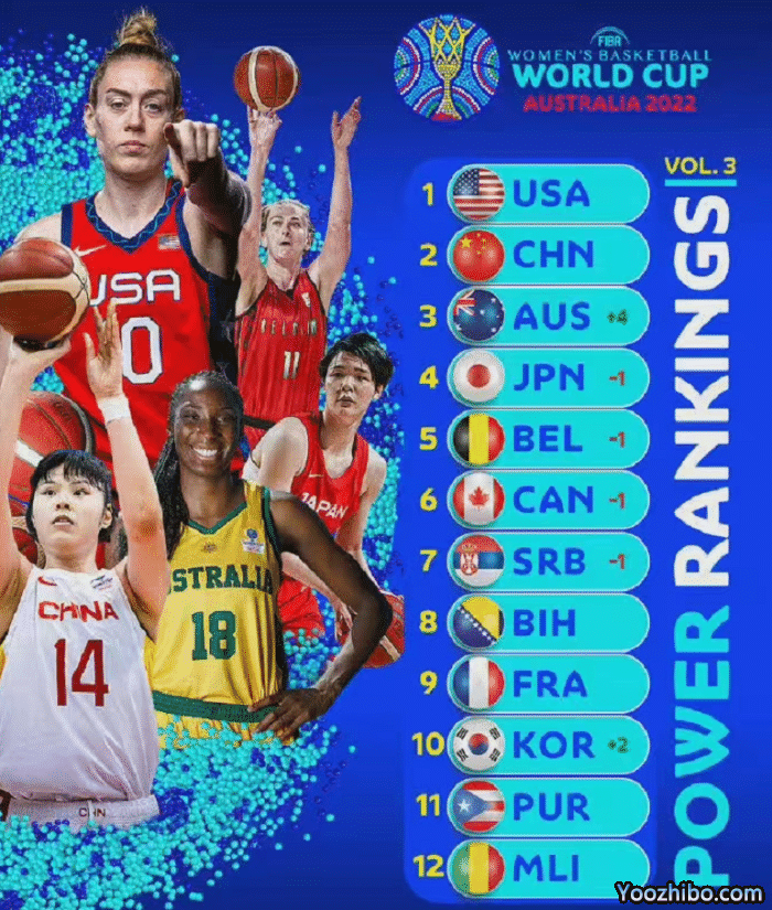 24直播网讯 北京时间8月23日,国际篮联FIBA公布了2022年女篮世界杯的最新实力榜。