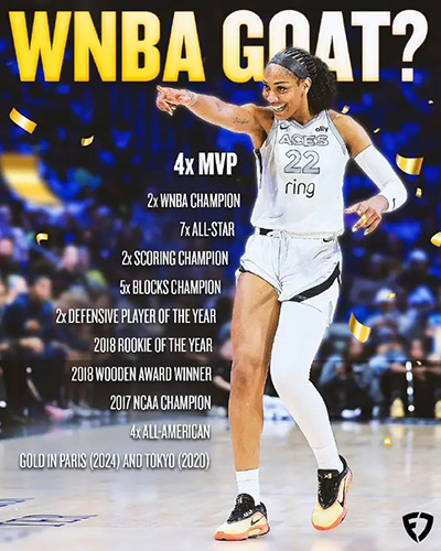 阿贾-威尔逊创纪录全票斩获MVP 获詹姆斯发文祝贺