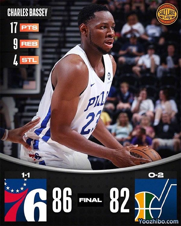 犹他夏联继续进行,费城76人此役面对犹他爵士,两队首秀中均未能赢球,首节一上来两队迅速进入状态,76人利用内线优势率先打出9-0小高潮,爵士内外结合一波8-0及时回应,首节结束时76人稍占上风,次节回来,76人进攻端突然断电,爵士回敬11-2攻击波一举反超,中段76人多点开花紧咬比分,卡波克洛连续暴扣后飚中三分,帮助爵士稳住局势,半场战罢,爵士反超4分。易边再战后爵士开局阶段进攻停滞,76人抓住机会打出10-2小高潮夺回优势,帕尔梅连中三分率队及时回应,泰勒-贝飚中超远打板压哨三分无奈超时,三节结束后76人取得5分优势,末节决战,76人连中三分一度占优,但中段帕尔梅率队再度追平,关键时刻奎恩和温斯顿连续取分,爵士追分未果,最终76人险胜对手。