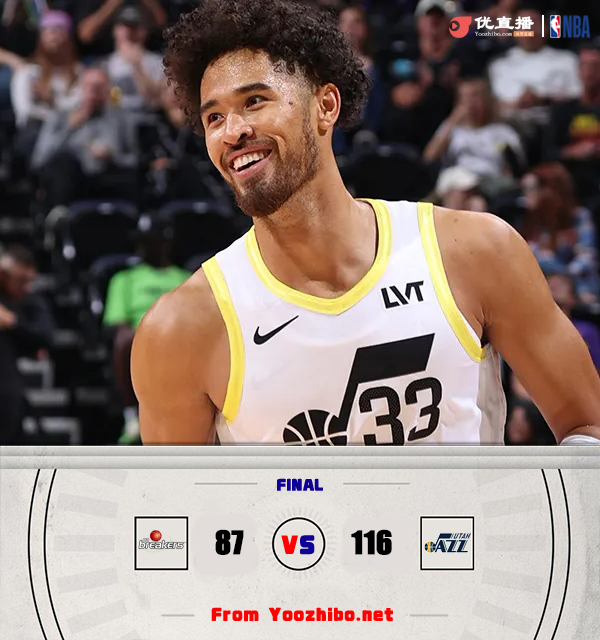 24直播网讯 10月5日讯 NBA季前赛,爵士今日迎战新西兰破坏者,这也是爵士季前赛首秀。比赛上来,两队就打得十分胶着,场上比分也是交替领先,首节结束新西兰破坏者完全不落下风与爵士战至29-29平,次节爵士终于占据了场上的主动权,他们单节轰下34分,同时将对手的得分控制在18分,半场结束时分差已经达到了16分;下半场回来,爵士并没有急于换下主力,分差也是被继续扩大到二十分以上,末节比赛已经彻底失去悬念,最终爵士大胜新西兰破坏者迎来开门红。