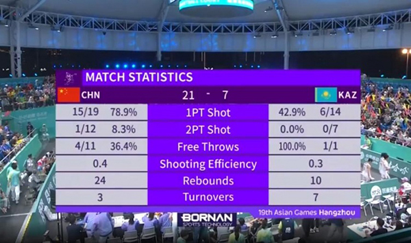 24直播网讯 9月30日讯 亚运会女子三人篮球1/4决赛,中国女篮迎战哈萨克斯坦女篮。比赛开始,王馨雨外线2分先拔头筹,此后中国女篮发挥内线优势,轮番冲击篮筐拿分取得9-1的领先,对手打中一球艰难破荒,此后中国队命中率下降,双方陷入僵持,陈明玲补篮打破僵局,中国队多点开花不断扩大领先,王馨雨上篮一举拿下比赛。最终,中国三人女篮21-7击败哈萨克斯坦队,晋级4强。