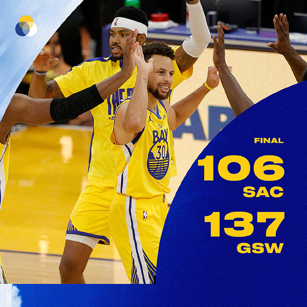 NBA常规赛,勇士今日迎战国王,前者上场比赛凭借着库里生涯新高的62分战胜了开拓者,目前排在西部第六位,而后者已经遭遇两连败,暂列西部第八位。比赛上来勇士延续了上场比赛的良好势头,一波8-0的完美开局取得领先,分差也逐渐拉大到两位数,次节国王依旧没能找到限制勇士的办法,半场结束时场上分差已经达到二十分。易边再战,勇士牢牢掌握着场上的大比分领先优势,比赛过早地就失去了悬念,最终勇士大胜国王,送给后者三连败。