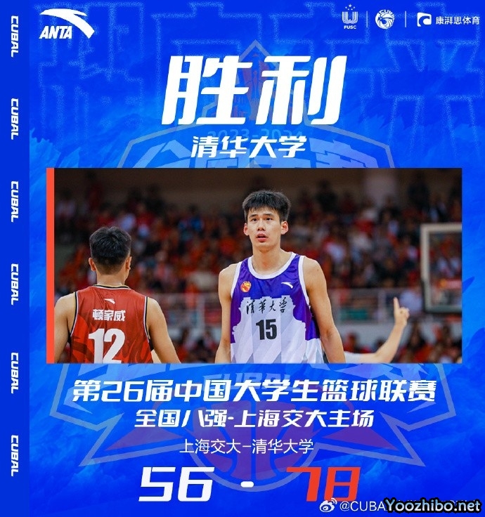 24直播网讯 6月9日讯 CUBAL大学生篮球联赛全国8强,上海交大主场迎战清华大学。比赛开始,清华大学比较慢热,打了4分钟才靠造杀伤拿得首分,上海交大则是打出8-2开局,双方进攻端状态都很慢热,刘冠男2+1后石奎回应三分,首节上海交大领先2分,次节双方命中率还不是很高,清华大学接连3记三分咬住比分,石奎苦苦支撑,顿家威和吴泽昊撑起上海交大进攻,半场上海交大领先5分。下半场,杨曦皓接连外线3记三分,个人连砍12分帮助清华大学建立主动权,随后杨曦皓又接连扔进三分,清华大学单节36-11直接拉开20分领先,末节上海交大止血但隰泰诚里突外投回应,杨曦皓三分还能进,清华大学牢牢掌握住20分以上领先,最终清华大学78-56大胜上海交大。