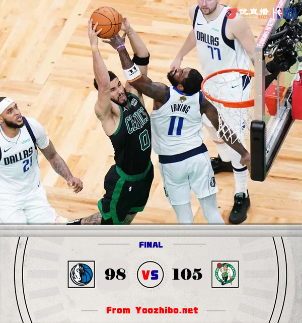 6月10日讯 NBA总决赛G2,凯尔特人继续坐镇主场迎战独行侠。目前总比分凯尔特人1-0领先。东契奇带伤出战,欧文G1后豪言“我还以为这的嘘声会更大一点”更让本场比赛充满看点。比赛开始,东契奇高效输出带队占据主动,凯尔特人连投带罚顽强咬住,欧文连续单打得手,次节凯尔特人奋力反击打出9-0的攻击波反超比分,独行侠轮番冲击内线拿分止住颓势,霍勒迪攻防两端稳定发挥,半场战罢凯尔特人54-51反超独行侠3分。易边再战,独行侠占得先机一度反超,但此后凯尔特人火力全开轰出10-0的攻击波获得两位数优势,独行侠连中三分追赶,末节双方围绕10分左右分差展开激烈争夺,凯尔特人多点开花保持优势,欧文和东契奇联手拿分苦苦支撑,朱-霍勒迪和德里克-怀特相继命中三分,独行侠苦苦追赶,怀特关键时刻追防PJ华盛顿送出大帽。最终,凯尔特人105-98再胜独行侠,总比分2-0领先。