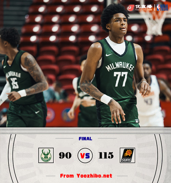 24直播网 7月20日讯 NBA夏季联赛,太阳对阵雄鹿。一开场,太阳攻防两端占据压倒性优势,多点开花轰出21-2的完美开局,约翰逊三分艰难破荒,太阳持续发力保持领先,次节雄鹿进攻回暖,但太阳稳扎稳打,以赛亚-王高效输出,半场战罢太阳56-33领先23分。下半场,双方展开对攻,雄鹿不断强攻内线拿分,太阳连中三分强势回应,末节两队依旧高效输出,太阳牢牢占据场上主动保持20分以上领先, 最终,太阳115-90大胜雄鹿。
