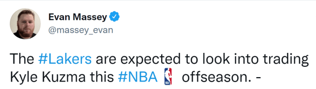 除了在后卫线上计划有所调整,湖人还打算交易库兹马。同样来自Massey的报道,一个NBA经纪人提及了湖人交易库兹马的计划。过去几年,湖人一直寄望于库兹马能有所爆发,虽然他的表现还算不错,特别是进攻端,但他并没能达到球队的预期。