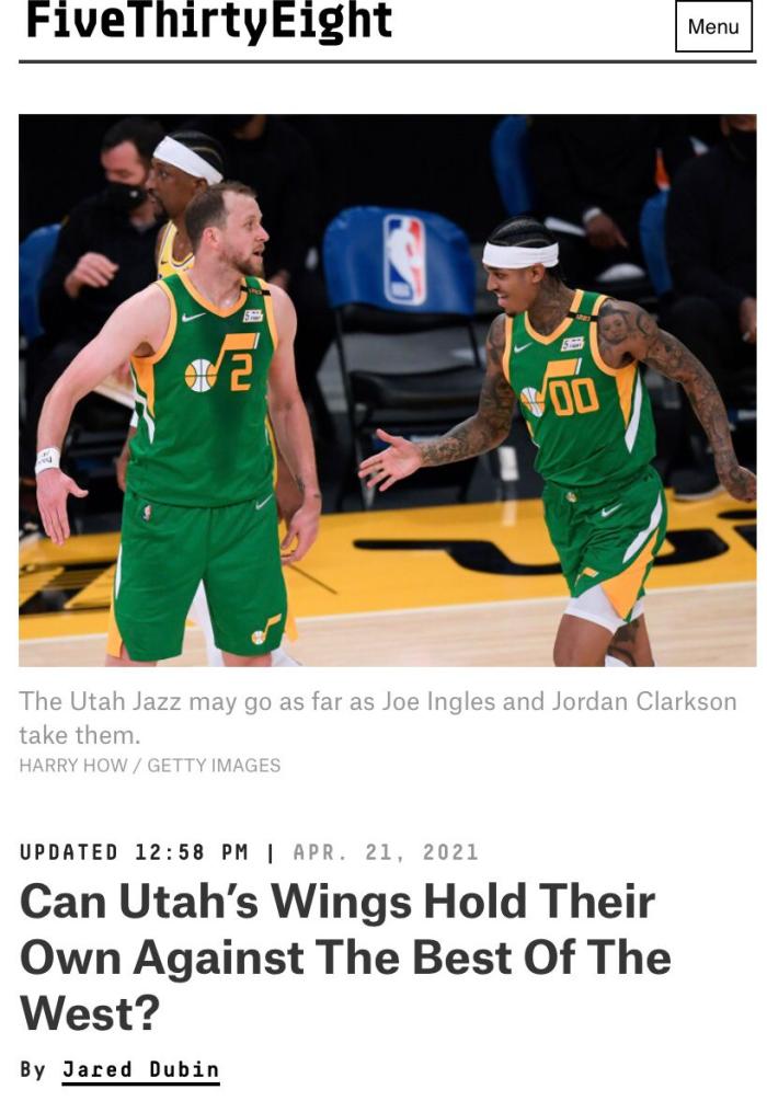 本赛季的爵士真的是出乎了所有人的意料之外,因为他们居然从赛季初期开始就成为了联盟战绩第一的球队,即便是到了现在也仍然是联盟第一。因此这家网站给了爵士15%的夺冠可能性,这对于联盟第一的战绩来说似乎有点低了,不过爵士是比较年轻的球队,之前在季后赛的表现也不太好,所以15%的概率也算比较合理。