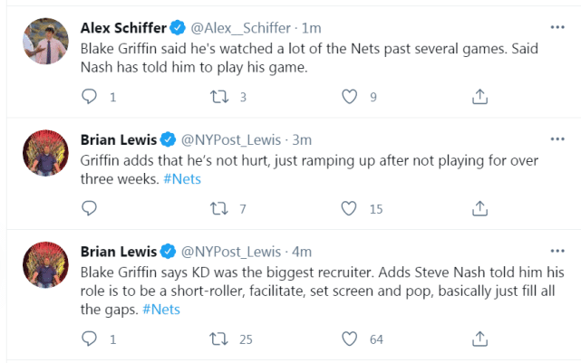 格里芬还表示,他看了篮网过去很多场比赛,自己目前没有伤病,会和篮网的训练组讨论调整体能状态的计划。虽然格里芬不能马上为篮网出战,但他非常有信心,他表示距离季后赛还有两个月,篮网有足够的时间进行磨合。