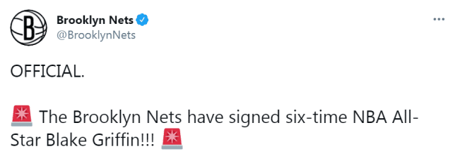 和篮网签约后的格里芬是啥心情?他在推特上转发了篮网官方和自己签约的消息,并在IG社媒上晒出了一个戴墨镜大笑的表情,显然,能够加盟一支有望冲冠的球队,格里芬太开心了。格里芬之前效力的活塞10胜26负,排名东部垫底,如今效力的篮网24胜13负,高居东部第二,距离东部榜首的费城