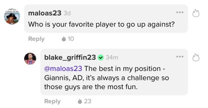 格里芬还表示在自己位置上最想对抗的球员是字母哥和浓眉,直言对抗他们是一种有趣的挑战。