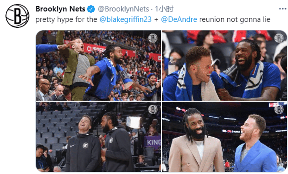 正式加盟篮网之后,格里芬转发篮网官宣动态并且配上一个笑脸的表情;篮网官推则是更新多条与格里芬有关的动态,更是晒出多张他和小乔丹同框大笑的合影:重聚不会说谎。