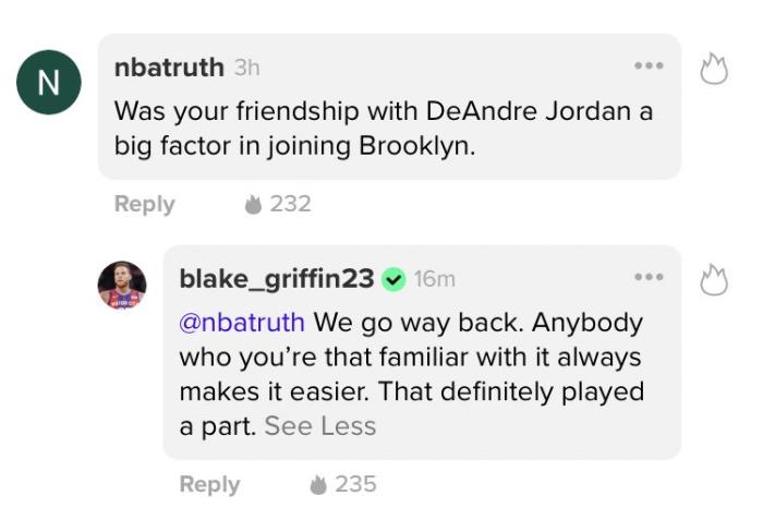 为何选择篮网而不是湖人?格里芬表示:​他们(篮网)需要一位4号位球员,我一直非常尊重史蒂夫-纳什和他们所有的人,肖恩-马克斯(篮网总经理)在那里做得很好;这是一个艰难的决定,我想成为一支有争冠竞争力球队的一员。