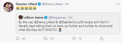 “再发个牢骚,利拉德和库里他们俩简直赖皮!!!我真的一直在告诉他们退得再远一点去投篮,但是他们做了什么???一点没错”