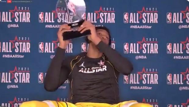 24直播网讯 北京时间3月8日,2021年NBA全明星结束了,最终结果是勒布朗队击败了杜兰特队,字母哥捧起了MVP奖杯!