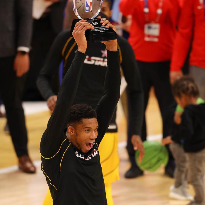 24直播网讯 北京时间3月8日,詹姆斯队170-150轻松大胜杜兰特队,字母哥全场出战19分钟16投16中其中三分3中3,高效轰下35分5篮板3助攻,力压库里当选今年全明星赛科比-布莱恩特MVP;字母哥职业生涯首次夺得全明星MVP,成为全明赛最大赢家。