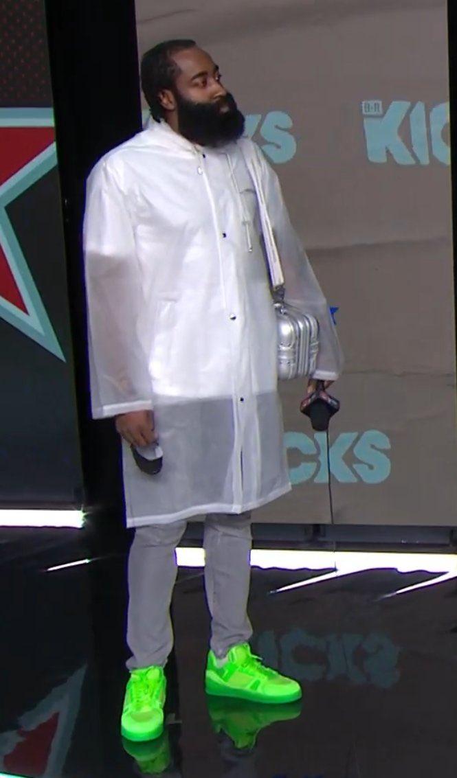 目前NBA众球星都已正式亮相,其中篮网巨星哈登的穿衣搭配十分抢镜,灰色紧身裤搭配绿色鞋子,上衣穿着一件白色半透明外套,还背着一个十分另类的包,近镜头可以看出哈登就像一夜变胖,这身材又引热议;接受采访时,哈登表示希望不负众望,给球迷们一些特别的东西。
