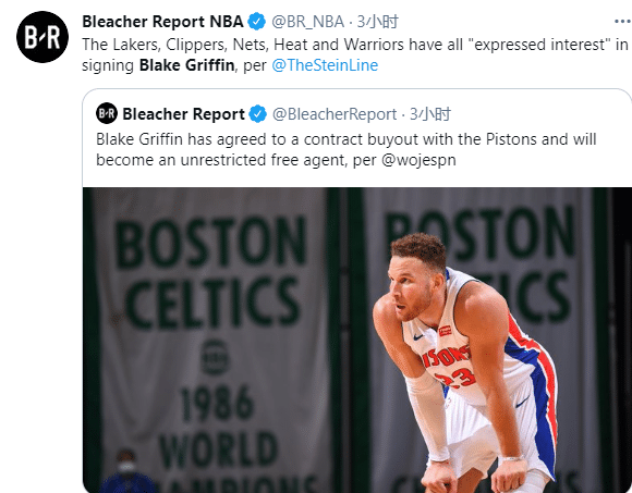 24直播网讯 北京时间3月6日,09年状元布雷克-格里芬正式做出决定,据ESPN名记报道,格里芬已经同意与活塞达成买断,从而成为一名完全自由球员;随后名记曝格里芬六大潜在下家,布鲁克林篮网是最有力的竞争者,湖人快船等队在列,不过快船目前没资格参与抢人。