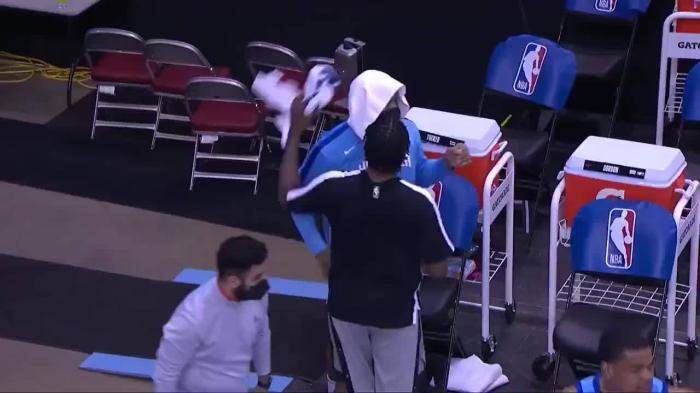 火箭球员和哈登互动时,塔克为何把自己包裹的严实躲在角落?