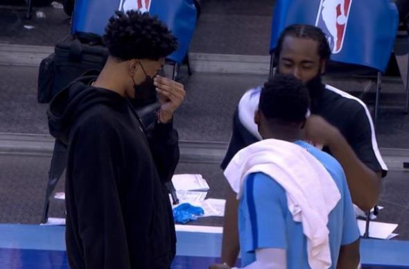 火箭球员和哈登互动时,塔克为何把自己包裹得严实躲在角落?