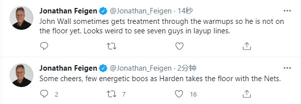 究竟火箭球迷如何接待哈登?据火箭记者费根报道,哈登亮相时,现场有一些欢呼声,也有少量的嘘声;另外要说的是火箭伤病满营,本场比赛只有8名球员可以出战,其中沃尔在热身时接受治疗,场上只有7名火箭球员热身,这画面让人感觉很奇怪。