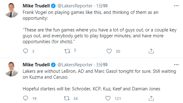 湖人对阵国王的首发阵容大概率是施罗德、库兹马、波普、大莫里斯和达米安-琼斯,其中库兹马是否出战要等到赛前决定,卡鲁索也是如此;对于这样的阵容,沃帅表示:这是一场有趣的比赛,我们有几位关键球员缺席比赛,但其他球员可以获得更多的上场时间和投篮机会。