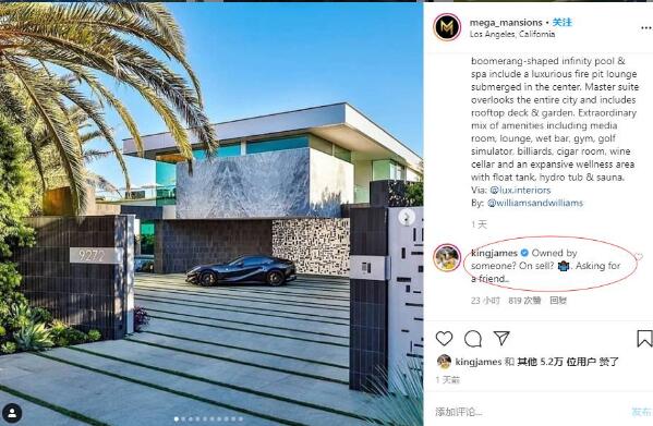 不缺钱的詹姆斯为何会2050万低价甩卖洛杉矶豪宅?