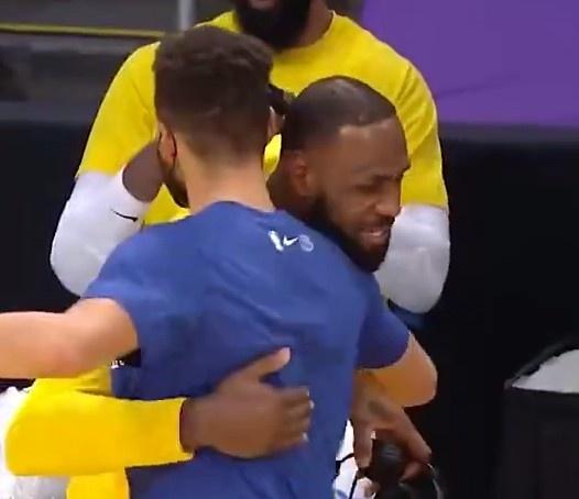 最高敬意!老詹中断采访与库里拥抱,后者:近6年被勇士虐的队来报仇!