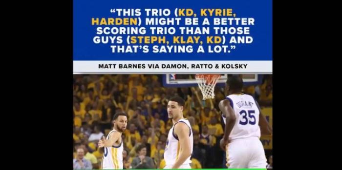 人们总会习惯性地把这支进攻天赋爆表的篮网与当年的勇士对比,对此前勇士旧将,绰号“巴爷”的悍将马特巴恩斯表示“尽管我曾经与杜库汤一起打过球,但我觉得篮网的三位可能比这三位更能得分,这点意义重大。他们在进攻端的化学反应肯定没有问题,哈登在场上时,他们的进攻联盟第一。但篮网一直在强调防守,他们知道人们在讨论那些防守数据有多糟糕,他们意识到防守不仅仅是在场上努力那么简单,所有球员必须保持一致。我觉得他们需要获得一位中锋,比如麦基、庄神。这样小乔丹在陷入犯规麻烦时,就不用让KD和格林打四五号位,以减轻他们防守时的压力。”