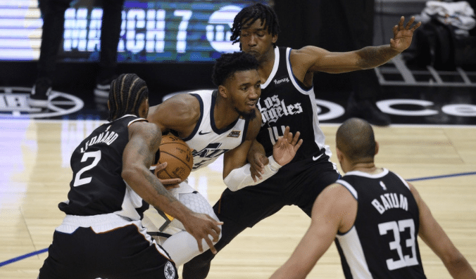 24直播网2月20日讯 NBA常规赛爵士的连胜脚步终止了,他们在面对快船的比赛中遗憾输球,比分是112-116,爵士无缘大逆转,遗憾的结束了近期了9连胜, 不过他们依旧高居西部第一,力压湖人和快船两大豪强。这场比赛米切尔砍下了35分4篮板5助攻3抢断的全面数据,尤其是末节最后时刻他在短短81秒的时间里连续轰下12分,可惜的爵士还是遗憾落败。