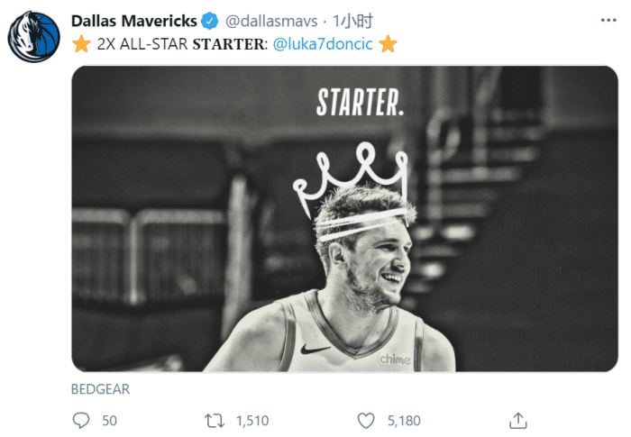 值得一提的是,这是东契奇连续第二年入选全明星首发,独行侠官方推特也是第一时间发推表示了祝贺!要知道这仅仅只是东契奇生涯第3个赛季!