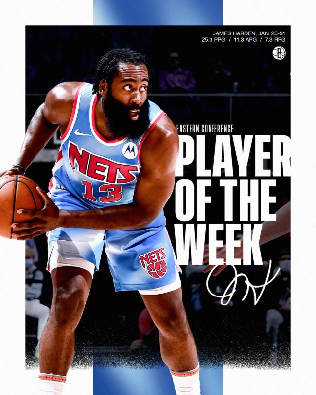 NBA官方刚刚宣布,哈登当选上周东部周最佳球员,这是他加盟篮网后首次当选周最佳,也是个人职业生涯第25次当选周最佳。哈登上周场均25.3分7.3篮板11.3助攻1抢断1盖帽,投篮命中率56.8%,三分命中率55%,罚球命中率88.2%,状态很不错。