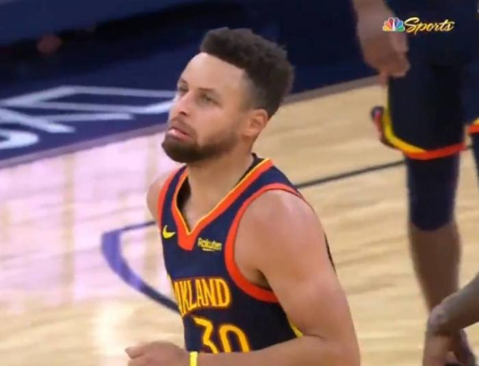 尽管手感不佳但是库里还是迎来了里程碑,出战711场位列勇士队史第三,但是一旦当他找回手感的时候对手就撑不住了!第三节勇士快攻中,库里接到格林传球命中底角三分,库里在球飞往篮筐的过程中就已经提前转身自信回头。第四节他又命中了一个高难度的抛投,只不过表情···有点生无可恋的意思!