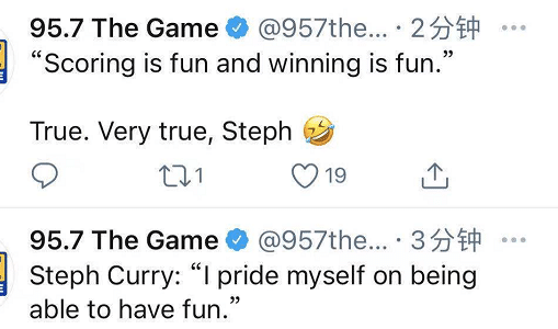 这场比赛结束之后库里接受了采访,他非常开心,称自己打的很开心,得分很爽,球队赢球也很爽。