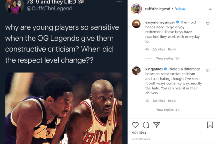 詹姆斯回应:建设性的批评和仇恨是有区别的。我曾见证过这两种方式都冲着我来,其中大部分都是仇恨,你能从他们的表述中听出来。