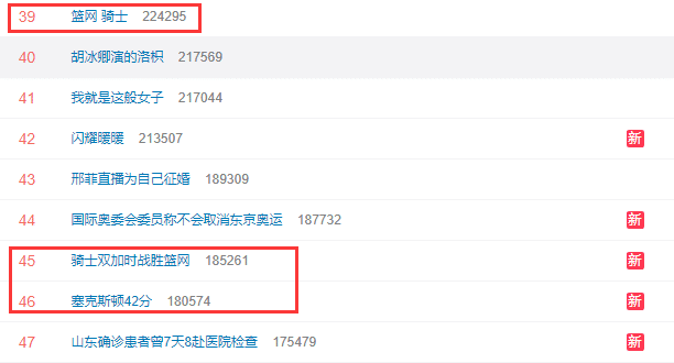 赛后很快这场比赛的相关话题都登上了热搜榜的,其中就包括了“塞克斯顿42分”,“骑士双加时战胜篮网”,“篮网 骑士”等等话题,外界对于这场比赛的关注度非常高。