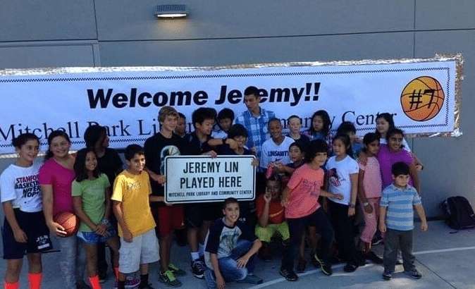 林书豪这是在重走青春路,这个球场和他也有很大的关联,在8年前的2013年9月份,林书豪参加Palo Alto 市Mitchell Park新建篮球场启用仪式,当时书豪和市长、小朋友们一起打球,所以就有了这样一个“Jeremy Lin Played Here ”的看板挂在这球场。不得不说这座城市对于林书豪还是很热爱的,而林书豪也用这样的方式来回馈这座城市。
