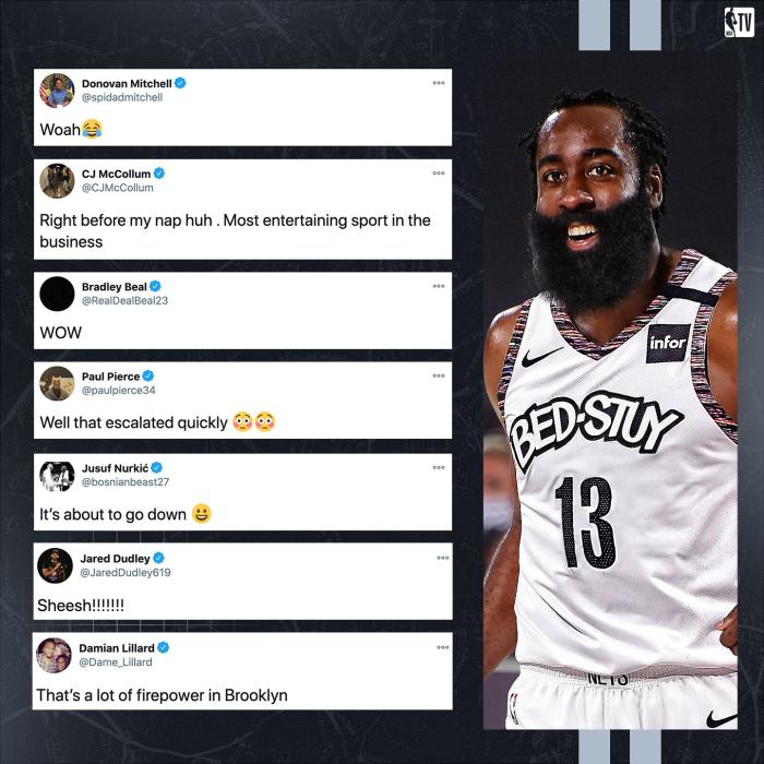 24直播网讯 北京时间1月14日,火箭、篮网、骑士和步行者正式达成四方涉及多名球员的超级大交易,篮网正式引援哈登,从而打造哈登、杜兰特和欧文组成的三巨头,哈登加盟篮网的同时创造一系列历史纪录,如此便能看出篮网三巨头的进攻火力有多猛?