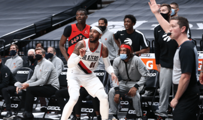 24直播网1月12日讯 北京时间1月12日,猛龙背靠背客场挑战开拓者,在这场比赛中,猛龙最多的时候一度取得17分领先,但他们在第四节被开拓者打出36比25的比分惨遭逆转!最后时刻,麦科勒姆艺高人胆大,单打范弗利特命中高难度后仰跳投帮助球队取得反超,此时留给猛龙9.6秒时间,但西亚卡姆单打考文顿无果,最终开拓者112比111险胜猛龙!