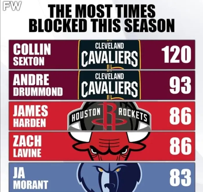 上赛季被封盖次数最多的球员,塞克斯顿就以120次高居榜首,而他的队友德拉蒙德紧随其后(93次)。