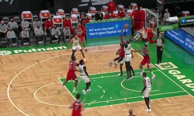 尴尬!韦少欲隔扣2米31中锋,被凯尔特人吉祥物直接血帽倒地