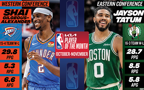 亚历山大获得西部月最佳,月最佳获提名球员——