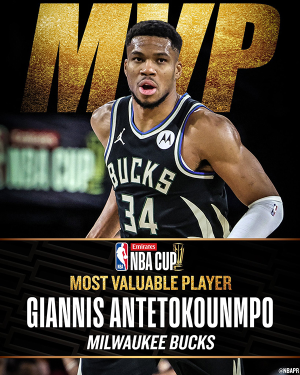 在颁奖仪式上,字母哥第一个高举冠军奖杯,与全队一起疯狂庆祝,51.5万美元的奖金到手,之后荣膺MVP,字母哥成为本届赛事的最大赢家;现场接受采访时,字母哥表示:我们会继续努力,因为任务尚未完成;字母哥还表示:我为他(利拉德)感到骄傲,我们的默契达到了前所未有的高度。