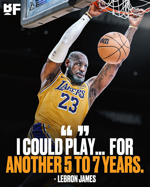 今日训练结束后,詹姆斯公开表示他计划在湖人退役,而且直言若自己愿意,他能再打5-7年,但自己不想打这么久;本赛季是詹姆斯为湖人效力的第7个赛季;目前湖人18胜13负排在西部第5位,詹姆斯本赛季已经打了28场比赛,场均登场35分钟能够拿到23.5分7.9篮板9助攻,投篮命中率49.6%,三分命中率35.7%,罚球命中率76.7%。