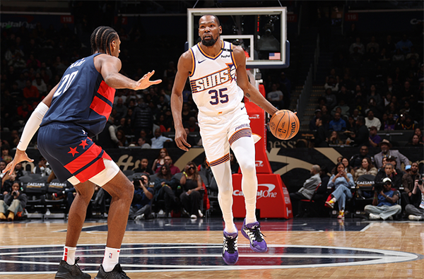 24直播网讯 北京时间1月17日,NBA常规赛太阳客场获胜并且送奇才8连败,杜兰特16投8中、三分5中1拿到23分6篮板3助攻2盖帽1抢断,布克24投10中拿到37分5助攻3篮板,杜布合砍60分拒绝逆转,布克关键6分锁胜局,邓恩打出生涯之夜。
