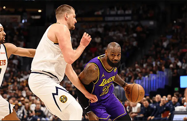末节詹姆斯单核带队打出12-4攻势,湖人瞬间领先到17分,期间老詹撞开穆雷打成强硬2+1,疯狂抖肩庆祝;暂停回来,约基奇强攻不中,詹姆斯突破造犯规两罚全中,随后防守大帽小波特;老詹下场休息,东契奇抢断反击上篮以及高难度抛投命中,湖人领先20分打花比赛,掘金撤下主力提前认输,最终湖人拿到23分大胜,终结掘金的9连胜。