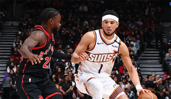 客场背靠背对阵猛龙,太阳三巨头继续首发出战,第一节杜兰特、布克和比尔的投篮手感都不错,三人合计13投9中拿到20分,其中布克首节7中5独砍11分,不过即使如此,太阳首节仍25-29落后4分。