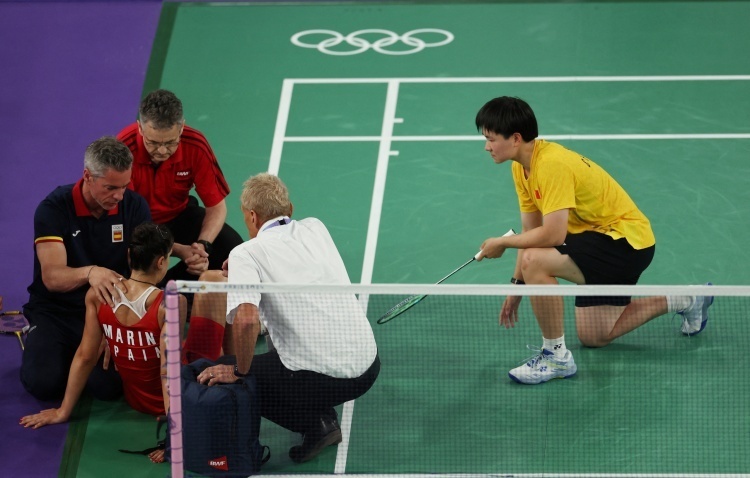 24直播网讯 在北京时间8月4日结束的巴黎奥运羽毛球女子单打半决赛中,里约奥运会该项目冠军、西班牙名将马林在局分1-0领先,第2局也大比分领先情况下,膝盖重伤无奈退赛,如此一来她的对手、中国选手何冰娇也因此晋级决赛。