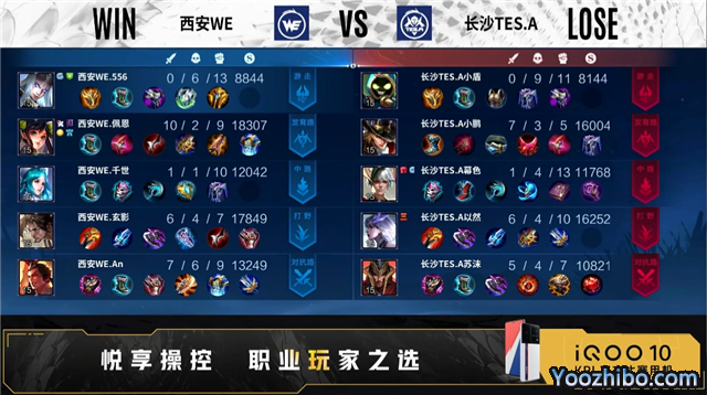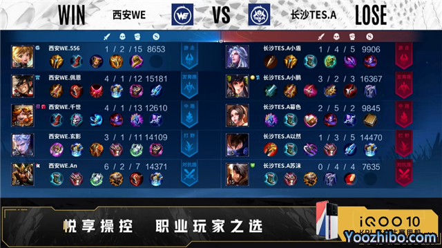 开局双方正常抢线。1分08秒中路西安WE击杀姜子牙,拿下一血。2分31秒西安WE拿下暴君。3分31秒对抗路长沙TES.A击杀镜,拿下主宰。6分46秒长沙TES.A摧毁敌方发育路外塔、对抗路外塔、中路外塔,西安WE拿下暴君,摧毁敌方发育路外塔。7分59秒野区长沙TES.A击杀猪八戒,打出0换1。8分36秒西安WE关键抢夺主宰,对抗路击杀东皇太一,摧毁敌方对抗路外塔。9分40秒西安WE摧毁敌方对抗路二塔。10分26秒长沙TES.A拿下暗影主宰,西安WE拿下暗影暴君。10分55秒西安WE摧毁敌方发育路二塔,打出1换2。11分30秒中路西安WE干将莫邪二连击破,打出2换2,摧毁敌方中路外塔。14分26秒野区团战双方打出1换1,西安WE拿下暗影主宰。15分14秒野区长沙TES.A击杀猪八戒,打出0换1。16分31秒中路西安WE击杀夏侯惇,摧毁敌方中路二塔。17分57秒西安WE拿下暗影暴君,19分01秒拿下暗影主宰。19分44秒野区团战长沙TES.A娜可露露二连击破,打出0换2。20分34秒长沙TES.A拿下风暴龙王,西安WE摧毁敌方对抗路高地。21分34秒长沙TES.A摧毁敌方中路二塔。22分43秒野区团战双方打野互换,长沙TES.A摧毁敌方中路高地。24分08秒西安WE拿下风暴龙王。25分09秒西安WE摧毁敌方发育路高地、中路高地,长沙TES.A击杀镜,西安WE马可波罗三连决胜,摧毁水晶拿下比赛。