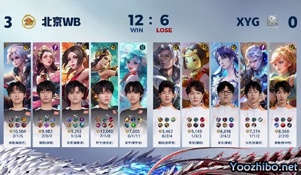 十二分半,双方经济差来到8K,XYG只剩三高。十四分钟,北京WB稳稳控下暗影主宰,并凭借龙兵进到水晶,乔兮(曾庆龙)虞姬伤害爆炸拿到四连超凡,北京WB顺势一波,获得本场比赛的胜利。